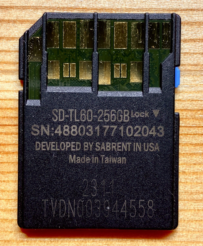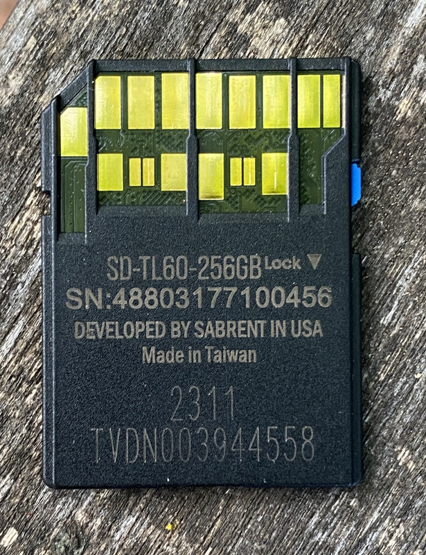 Nearly the exact same thing happened to me back in the fall. Two dead 256GB Sabrent V60 cards, both bought at the same time last summer from B&H - same batch number, etc. First one died Sept. 24 and the second Nov. 19th, IIRC.